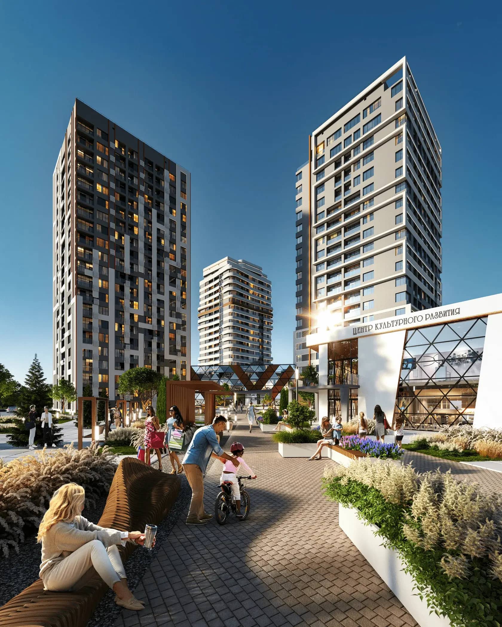 Современный архитектурный ансамбль из высотных домов, объединенных богатой внутренней инфраструктурой, высоким сервисом и живописными видами.
