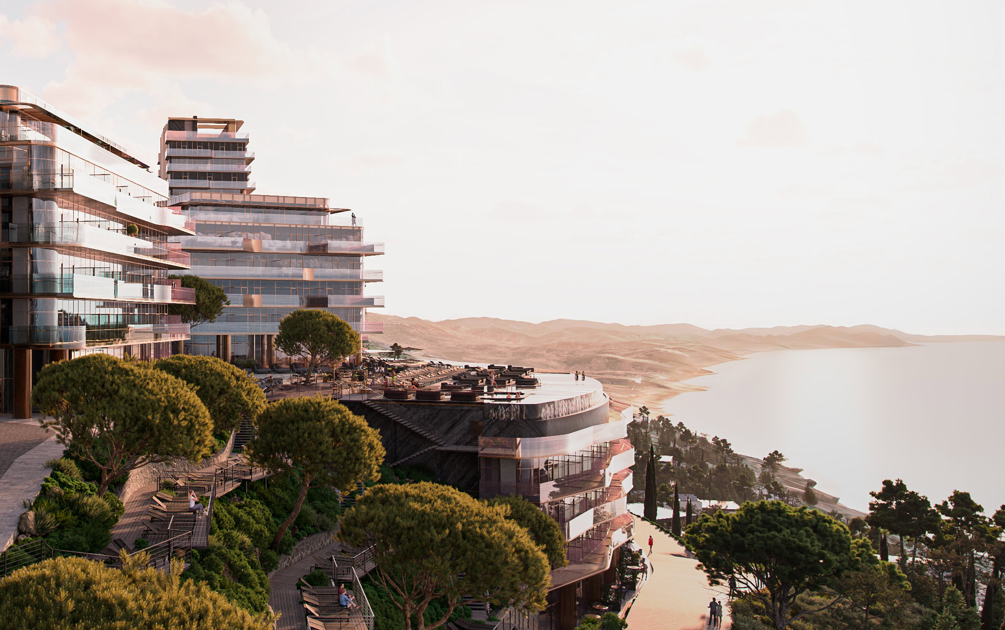 Современная архитектура, уникальные видовые характеристики и приватная курортная инфраструктура создают атмосферу пятизвёздочного курорта в окружении реликтового леса.