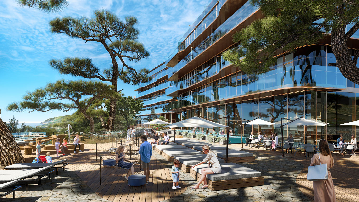 На территории комплекса будут расположены рестораны и лаунж-пространства, созданные в сотрудничестве с профессиональными ресторанными концепциями.