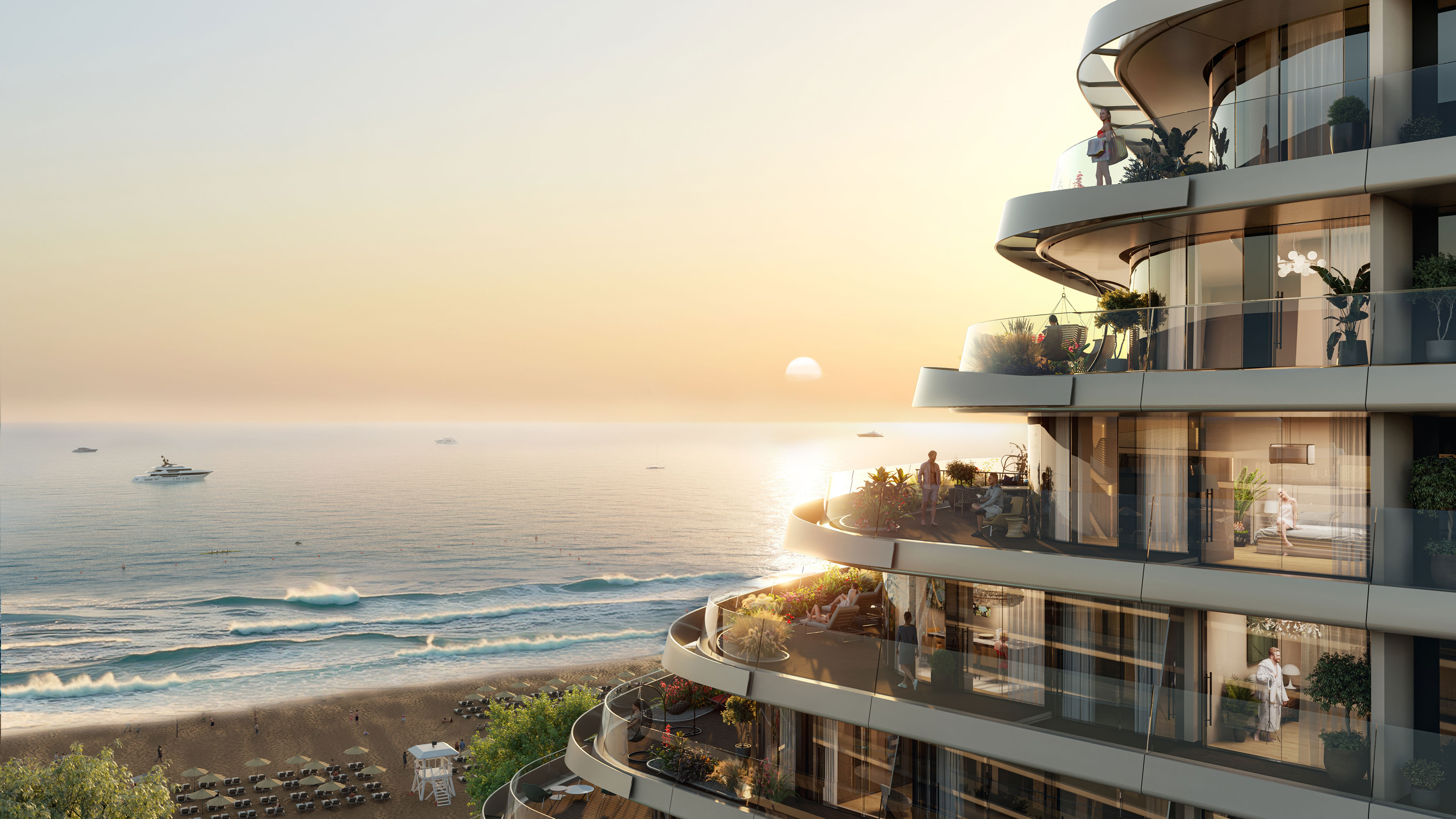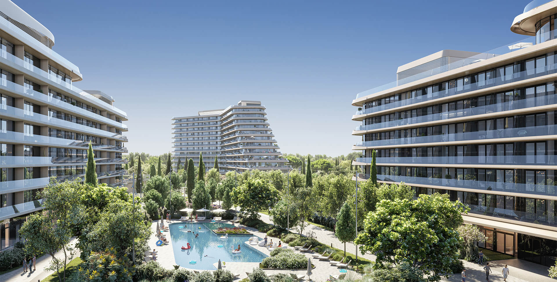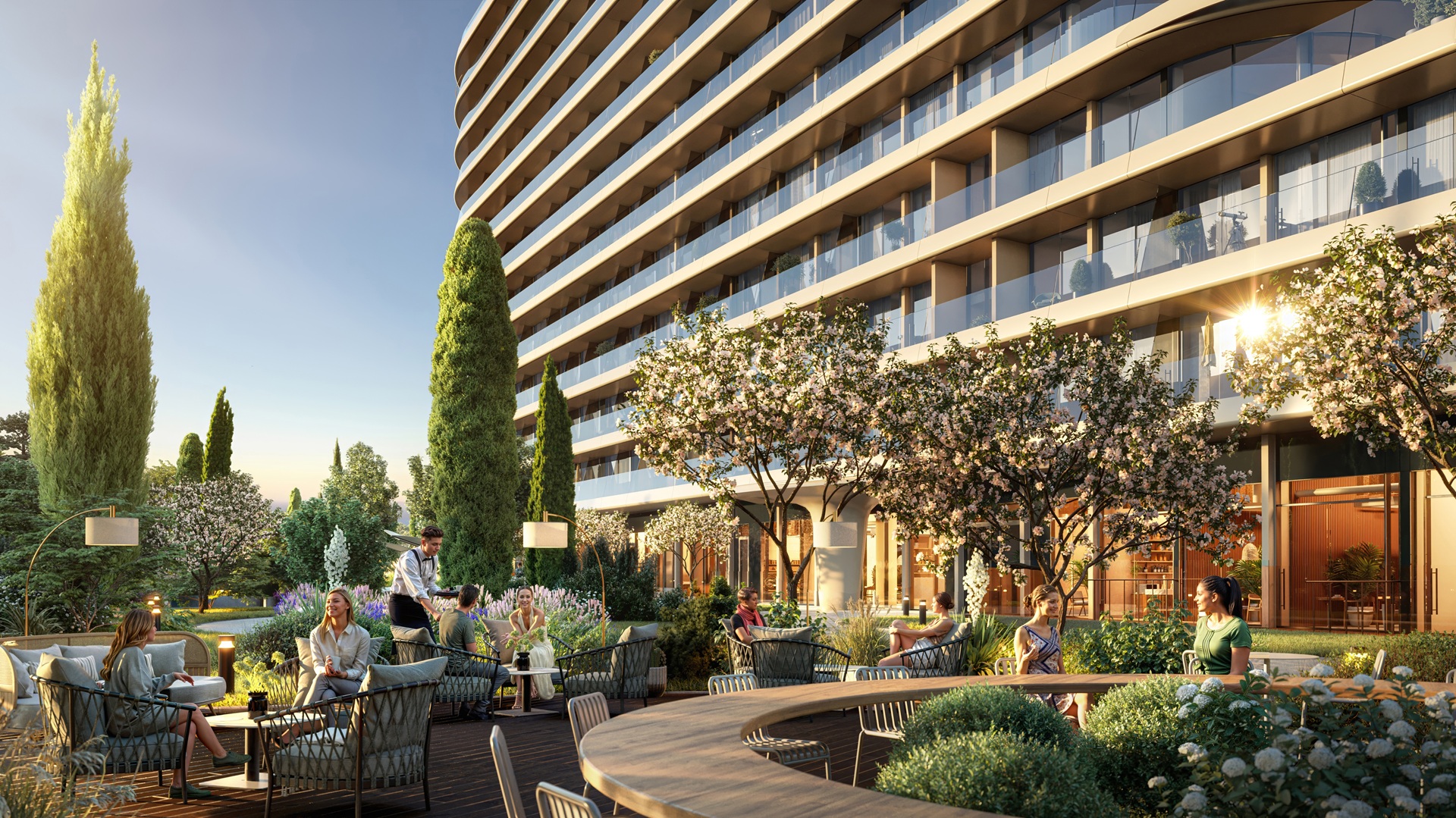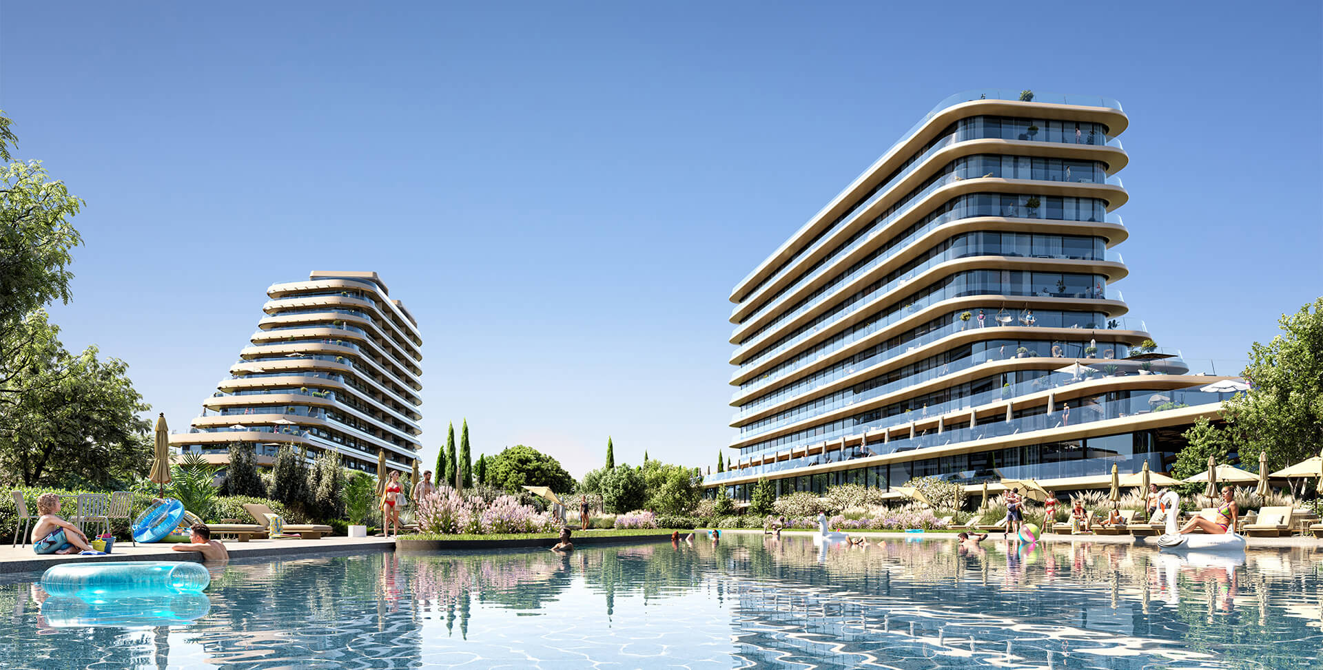 ● На территории комплекса — бассейны с подогревом, СПА-комплекс, детские и спортивные площадки, кафе и рестораны, медицинский центр, кинотеатр, коворкинг, термальные источники и многое другое.